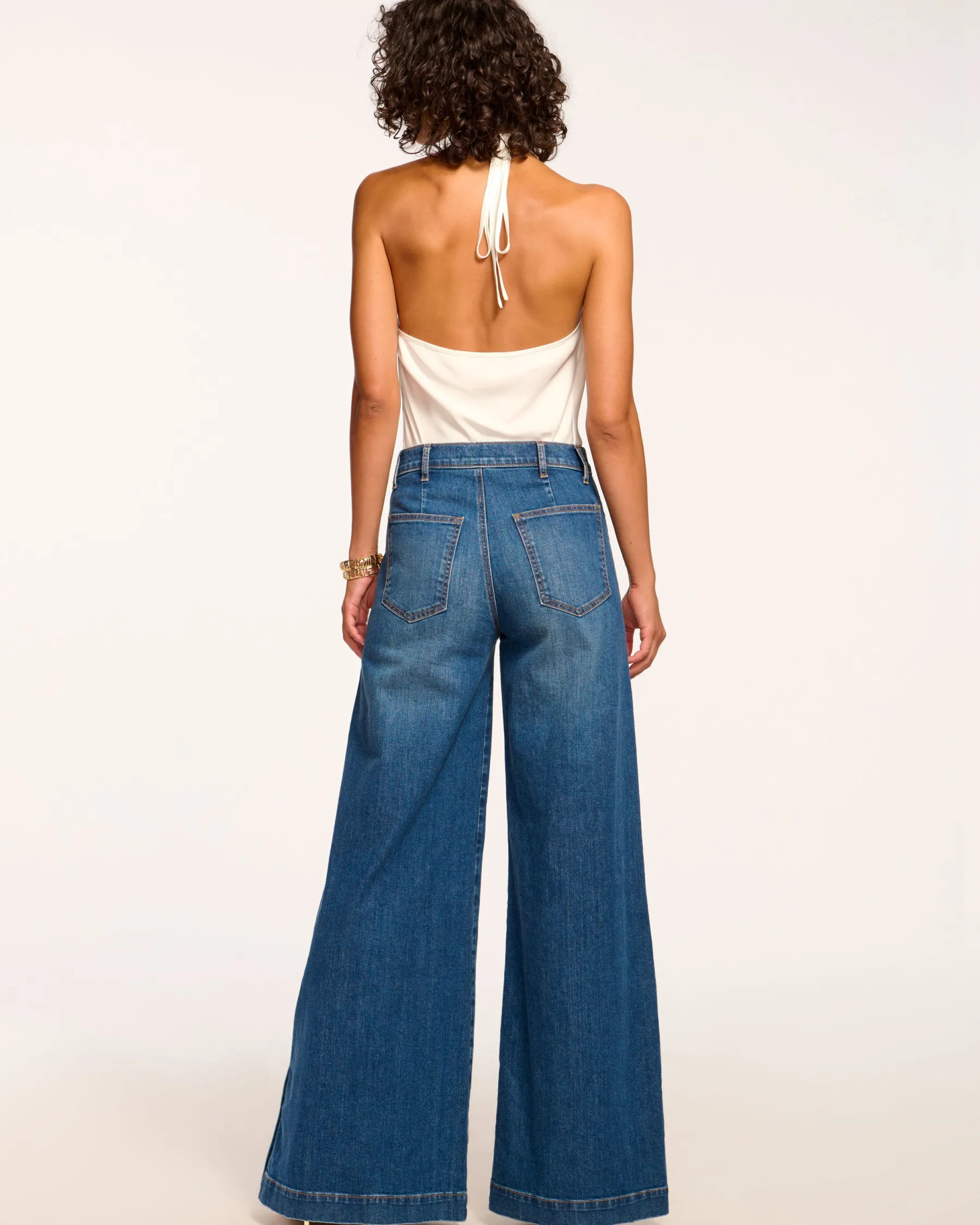 Step up your fall denim game with the Flores, a bold, wide leg jean with functional buttons on the legs, flattering seam detail, a button fly, and a hint of seventies flair. Style this high rise jean with a cozy sweater or dress it up with a silky halter top for your next date night.