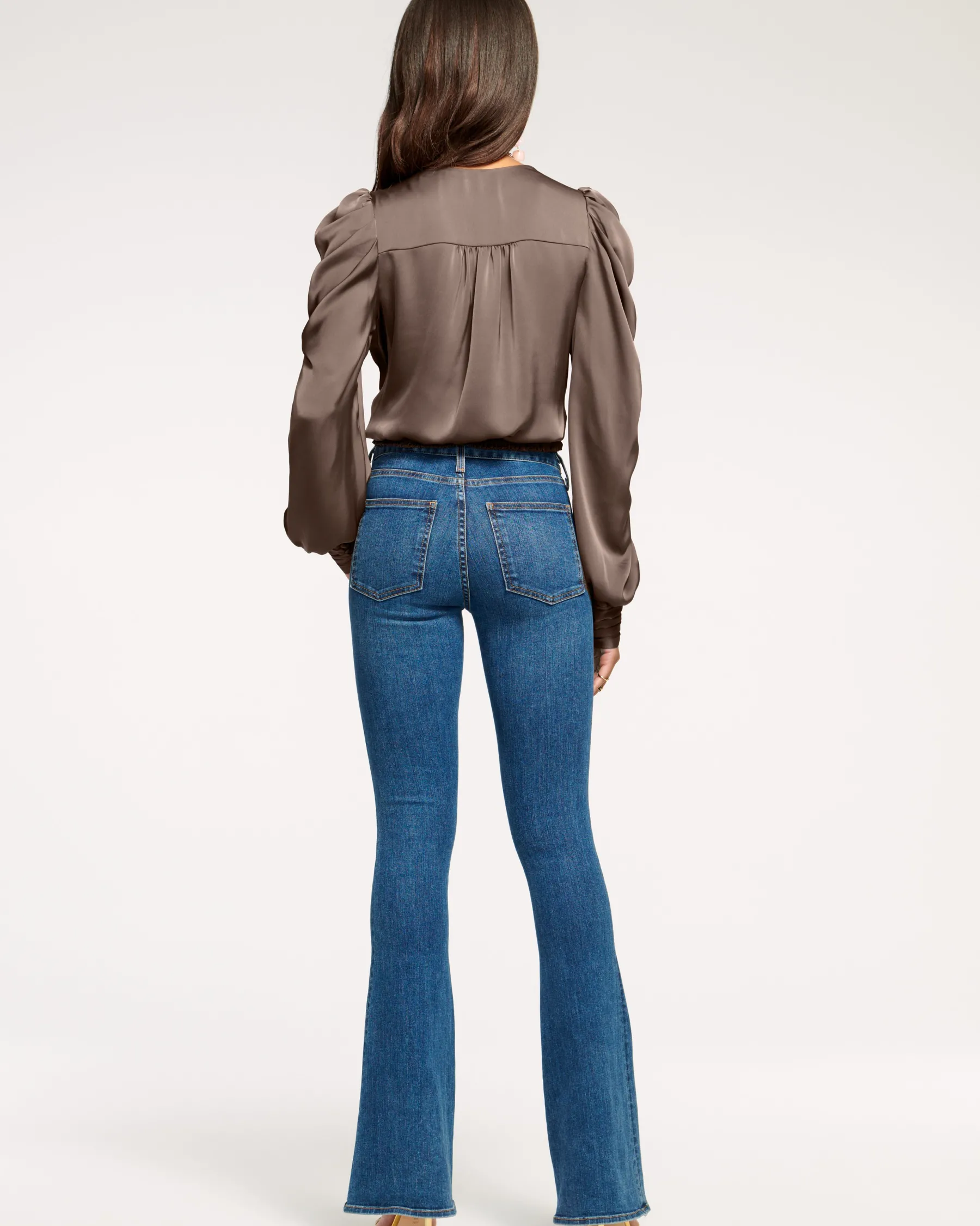 Our number 1 bestselling jean, the Helena High-Rise Flare, never goes out of style. With sailor button details and a 70s style edge, this slim-fit jean has been carefully constructed to achieve a smooth flare shape without bunching at the knee, making your legs look miles long. Our signature Japanese denim holds you in while still allowing you to move and groove through your do-it-all days.